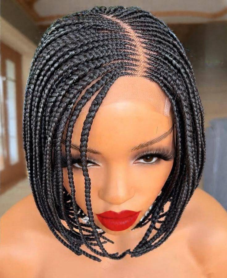 Step into effortless elegance with this premium braided wig, designed for women who love style without compromise. Featuring a chic bob length and a natural curved part, this wig frames the face beautifully while offering a modern, fashion-forward look. The lace front construction ensures a seamless, realistic hairline that blends flawlessly with your skin, giving the illusion of braids directly installed.